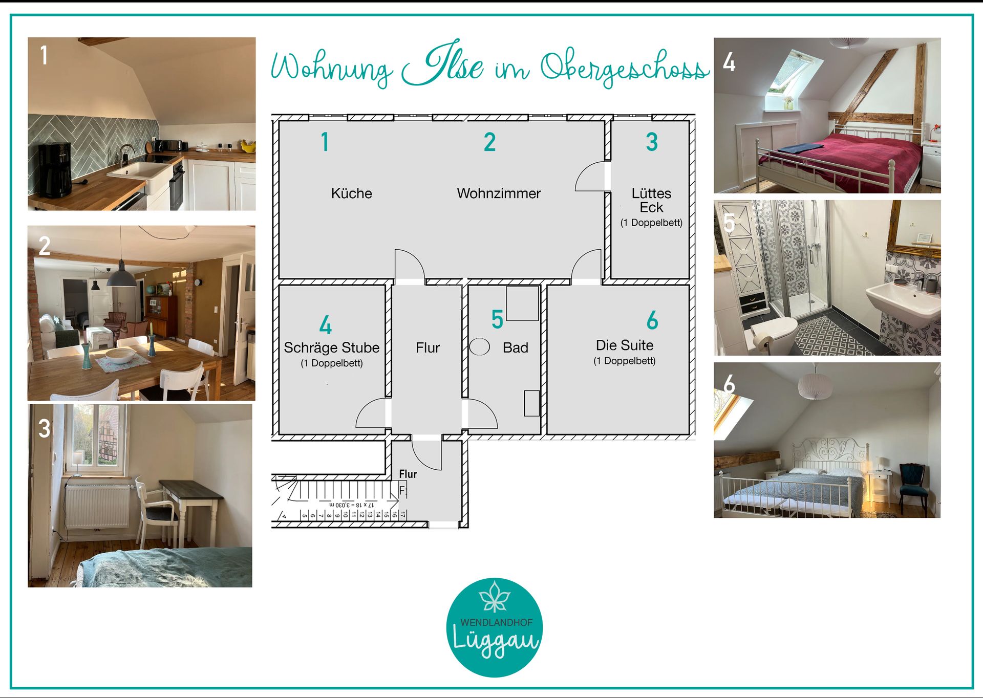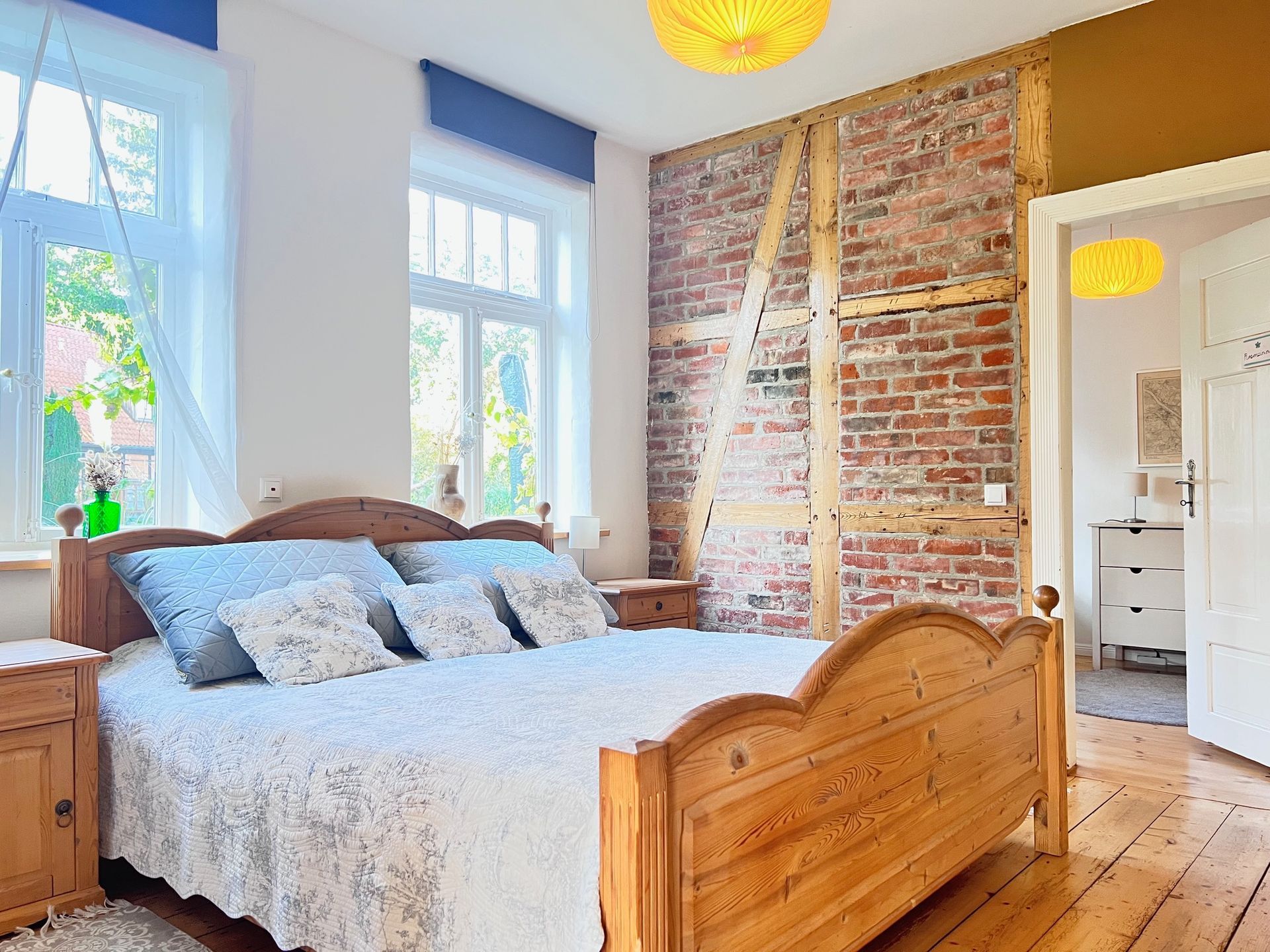 Das Lütte Eck ist ein charmantes, ruhiges Zimmer im Obergeschoss – ideal als Einzelzimmer, aber auch für Paare, die es auf einer 1,40-Meter-Matratze gemütlich finden. Durch seine Lage bietet es einen wunderschönen Blick über das historische Dorf Lüggau mit seinen Fachwerkhäusern. Ein kleiner, feiner Ort zum Ankommen, Abschalten und Wohlfühlen.