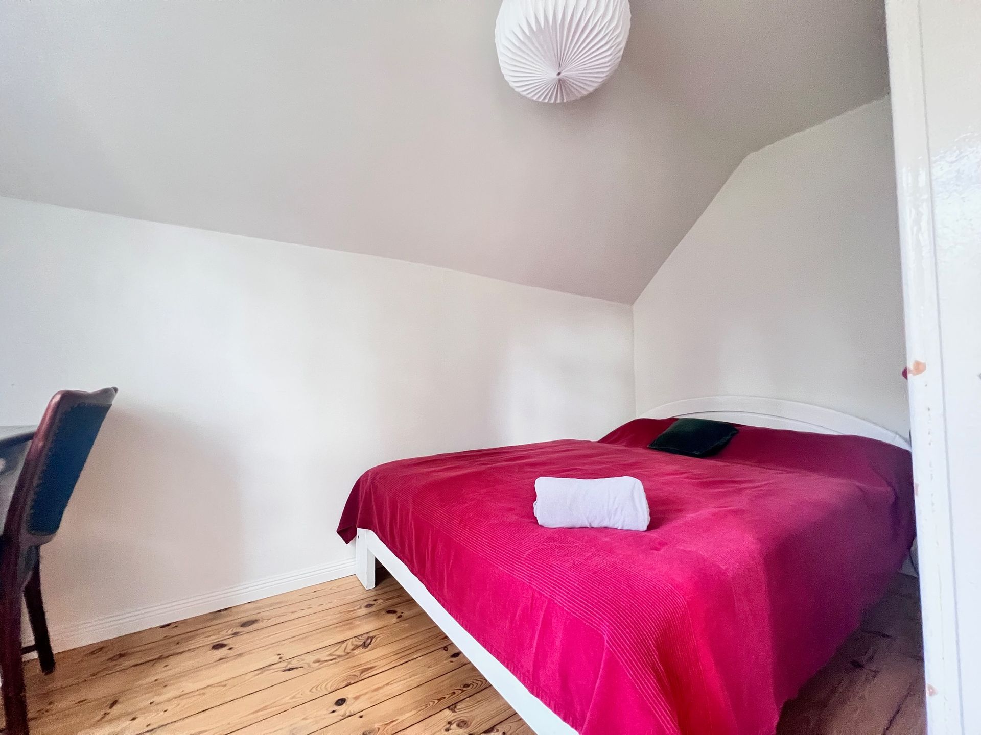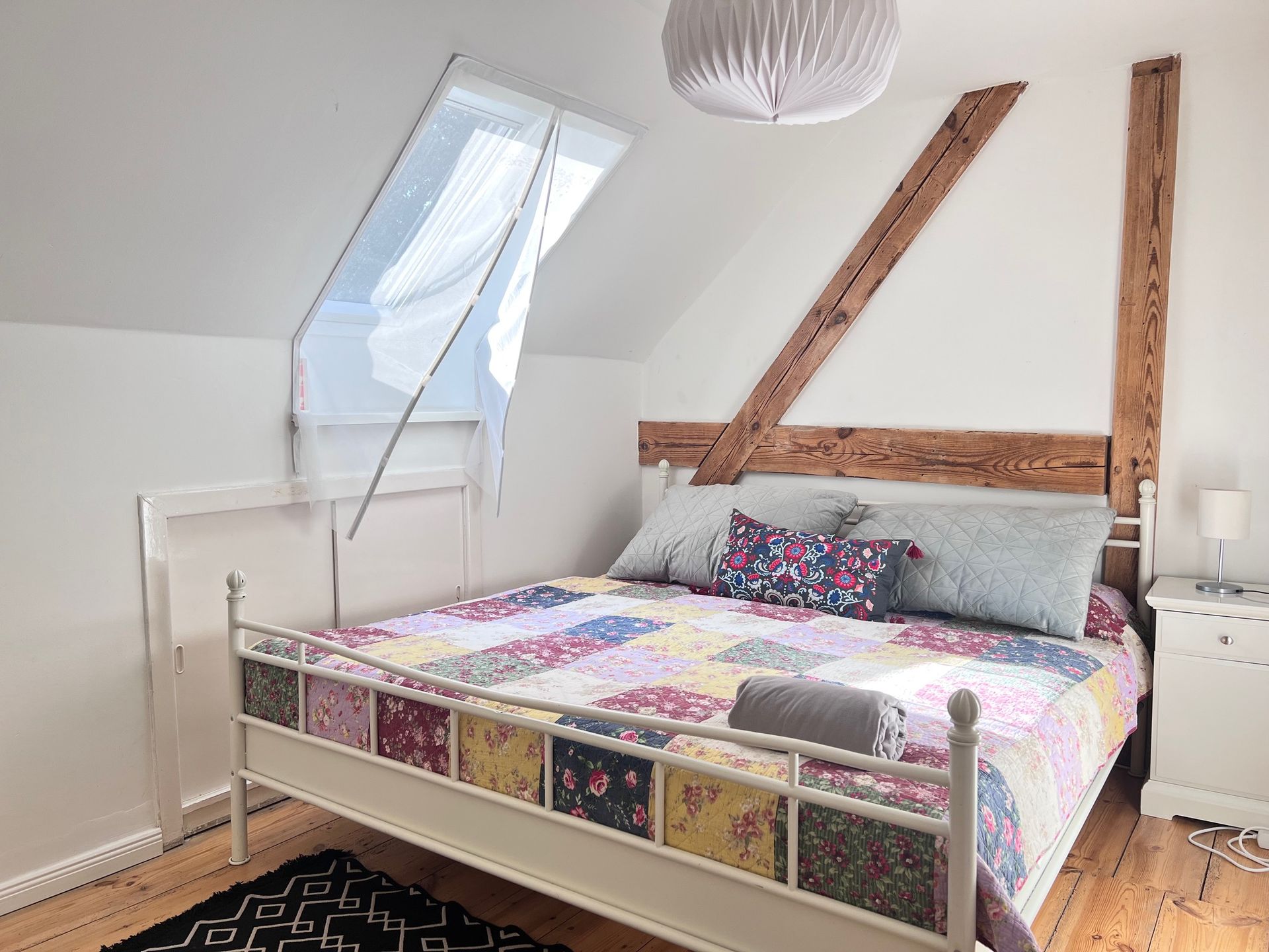 Die Suite ist unser Rückzugsort für alle, die es großzügig und besonders gemütlich mögen. Etwas abseits im Obergeschoss gelegen, bietet sie spürbar mehr Platz als alle anderen Zimmer – perfekt für Paare, Familien oder kleine Gruppen. Zusätzliche Matratzen stellen wir gern bereit, sodass sich hier auch ein entspanntes Matratzenlager für größere Kinder einrichten lässt. Wer Ruhe, Komfort und viel Raum zum Durchatmen sucht, findet in der Suite den idealen Wohlfühlort.